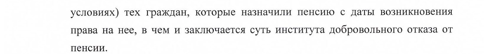Если бы это было не так, то выгода отложивших выход однозначно означала бы убыток (ущерб) для ПФ. Это так, потому, что речь об одном и том же для обеих сторон денежном мешке и следовательно - предоставляя выгоду (взяв деньги из мешка) - ПФ одновременно наносит ущерб "себе".